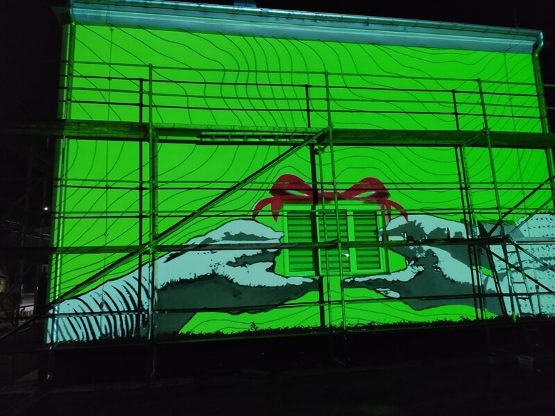Mural powstaje w ramach inicjatywy lokalnej w projekcie "Klub Integracji Społecznej w Mońkach”, realizowanym przez Ośrodek Wspierania Organizacji Pozarządowych w partnerstwie z Miejskim Ośrodkiem Pomocy Społecznej w Mońkach.