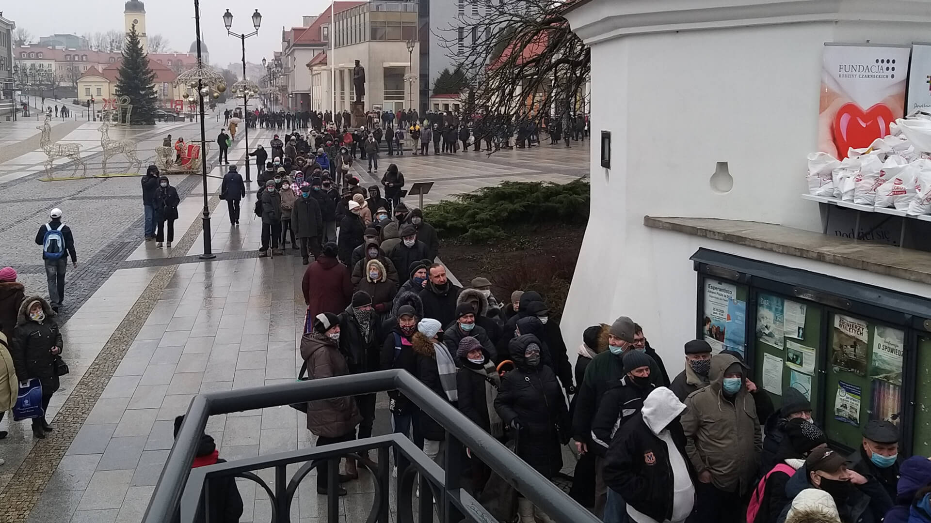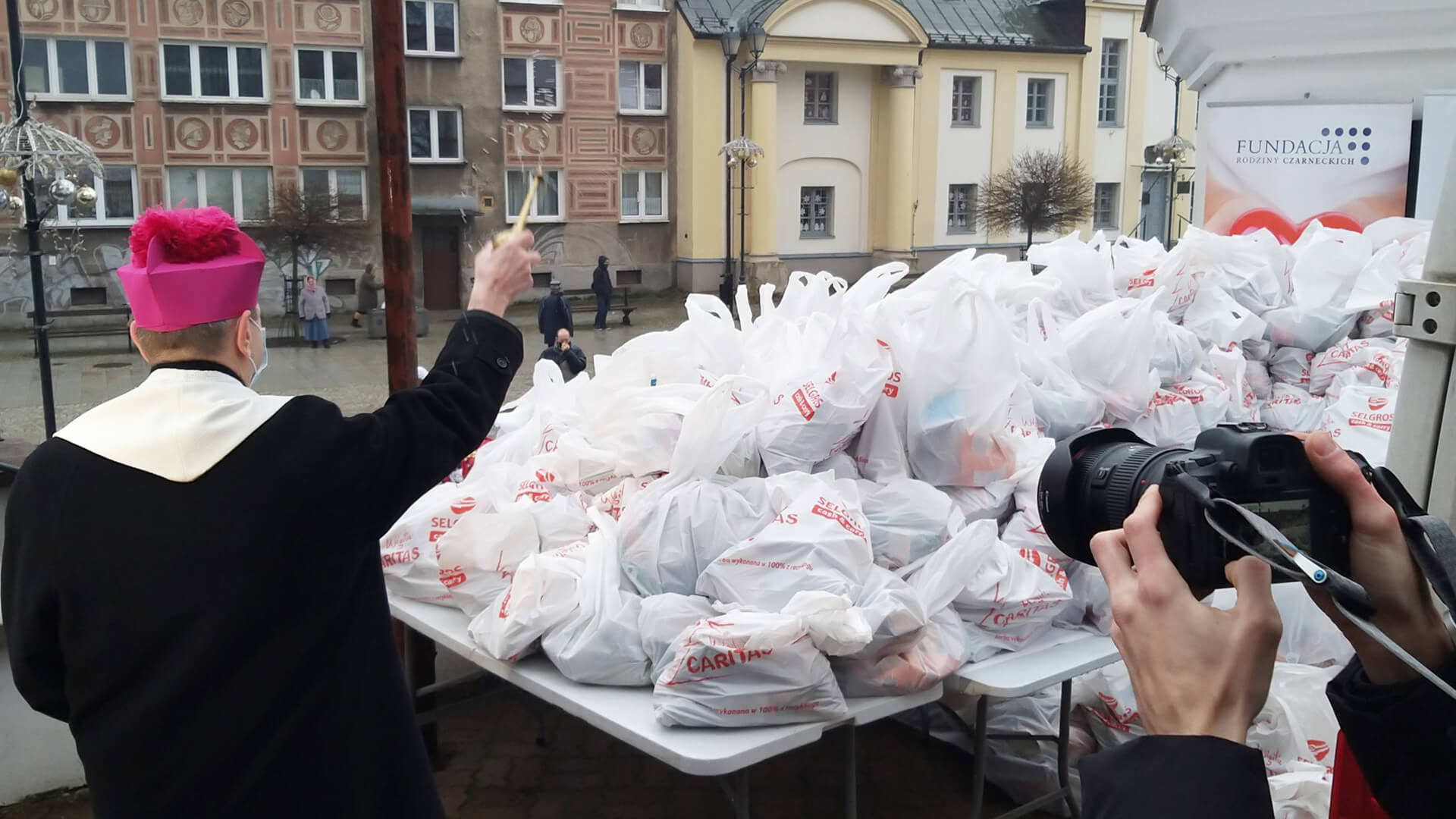To wspólna akcja m.in. Caritas Archidiecezji Białostockiej i Fundacji Rodziny Czarneckich. W poprzednich latach organizowali spotkania wigilijne na kilkaset osób, teraz z powodu pandemii - trzeba było się ograniczyć tylko do rozdania paczek.