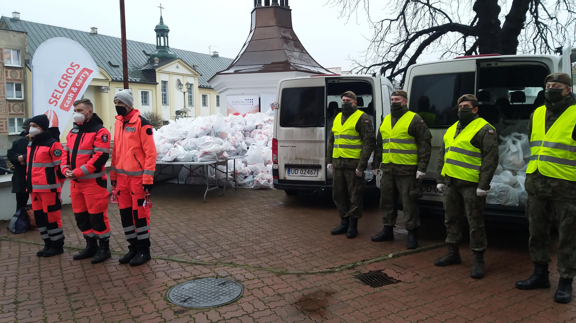 W czwartek (24.12) przy katedrze wolontariusze i żołnierze WOT rozdawali paczki ze świątecznymi potrawami. Znalazły się w nich m.in. gotowe dania wigilijne, słodycze i środki czystości.