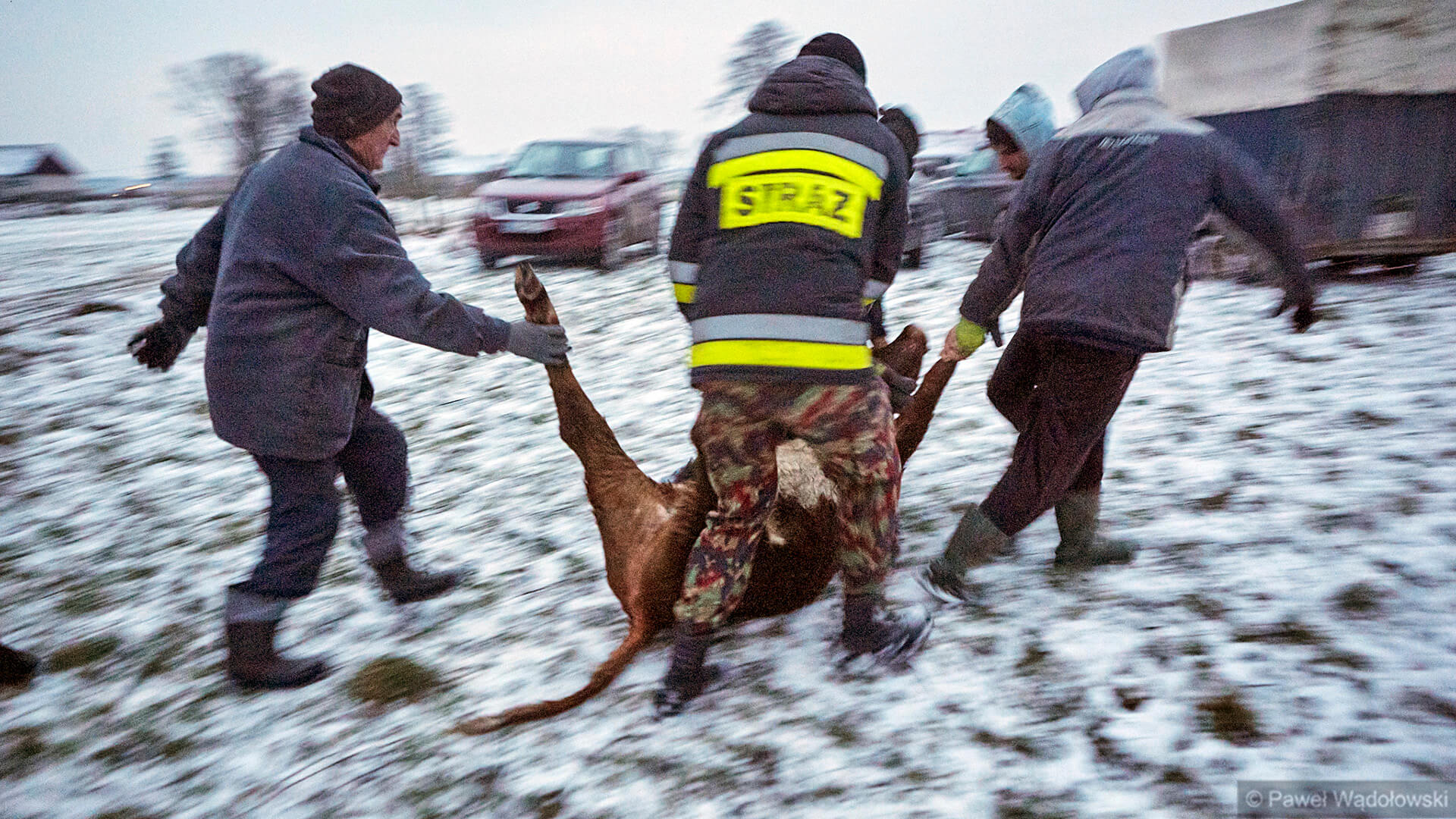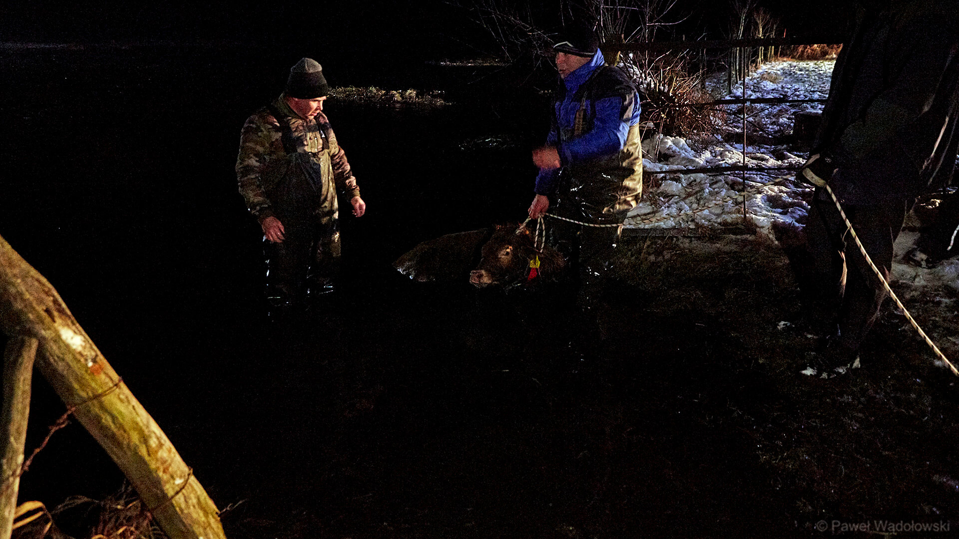 Zwierzęta, spłoszone przez stado psów przepłynęły wtedy przez rzekę. Przez wiele dni nie udało się ich odnaleźć, wczoraj (12.01) po południu rolnicy znaleźli i złapali całe stado. Najtrudniejsza część akcji była dopiero przed nimi - przeprawienie stada na drugą stronę Biebrzy.