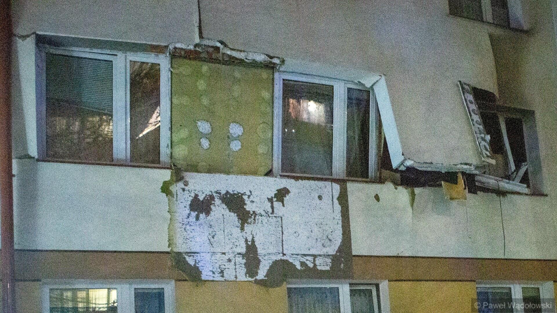 Strażacy ewakuowali z mieszkania 85-letnią kobietę, która trafiła do szpitala z poparzeniami drugiego stopnia rąk i twarzy. Wybuch był na tyle silny, że uszkodzona jest niemal cała elewacja bloku, trzeba było ewakuować 18 mieszkańców - cały pion budynku, gdzie doszło do eksplozji.