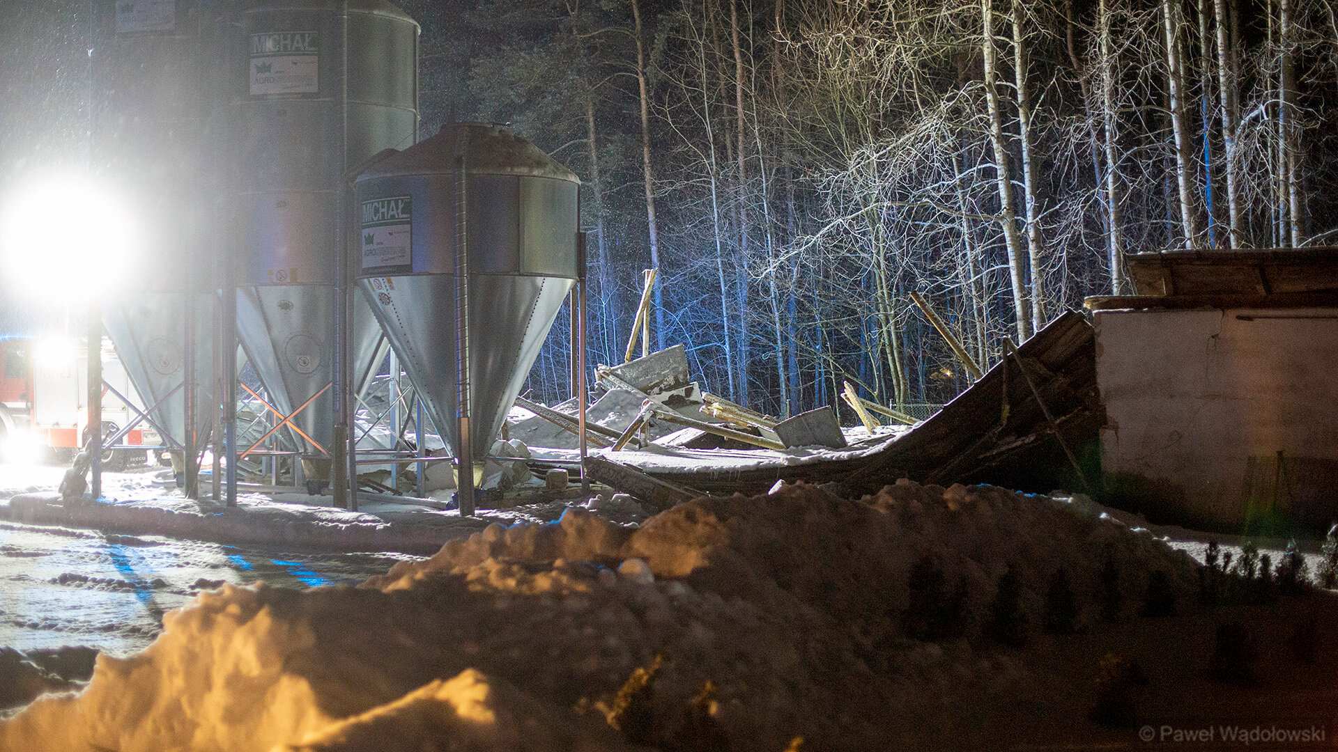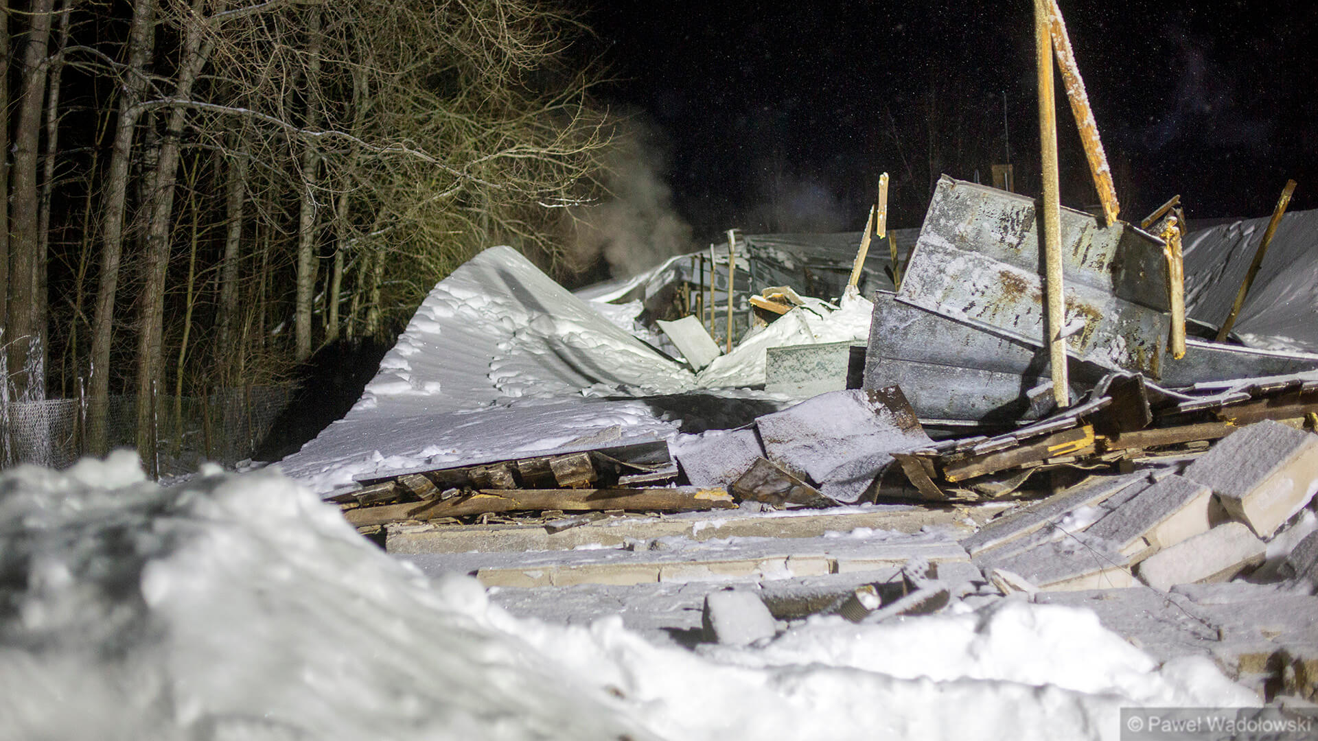 Najprawdopodobniej zbyt duża warstwa śniegu na dachu była przyczyną zawalenia się budynku gospodarczego w miejscowości Zabiele koło Kolna. Jak wynika z pierwszych informacji w budynku było około 25 tys. kurcząt. Pod gruzami mogło zginąć ok. 300. Pozostałe strażacy i pracownicy gospodarstwa przenieśli do innego budynku - mówi zastępca Komendanta Powiatowego Państwowej Straży Pożarnej w Kolnie Tomasz Sielawa.