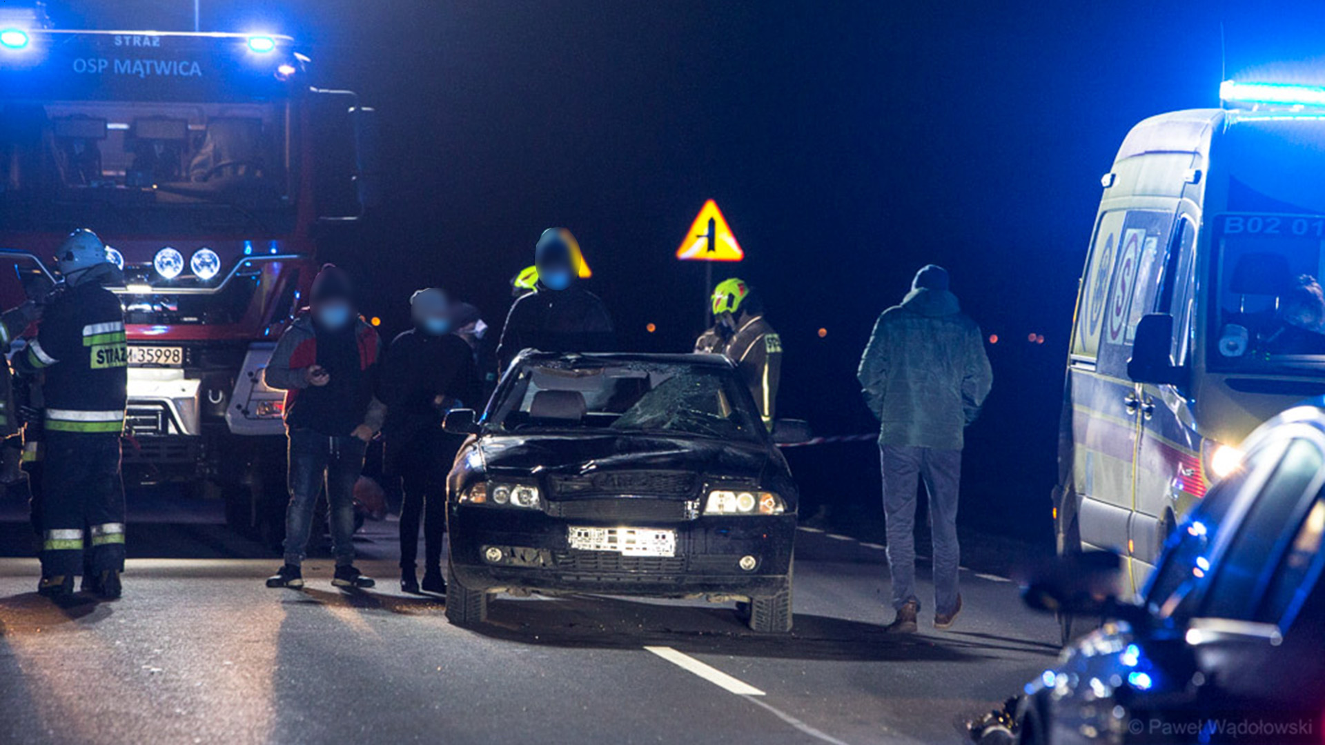 Badanie alkomatem wykazało, że 22-letni kierowca był trzeźwy. Do wypadku doszło na nieoświetlonym odcinku drogi.