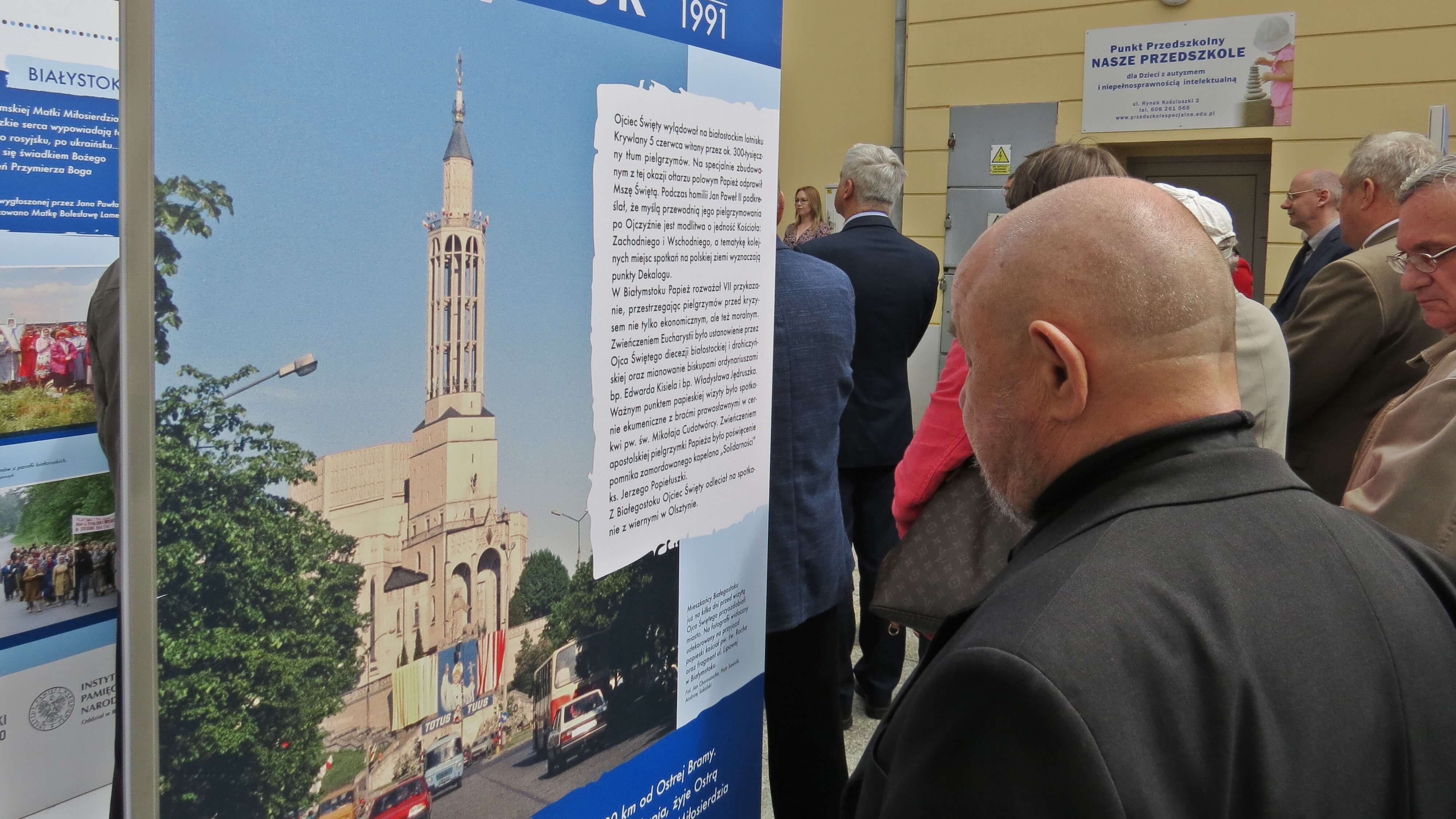 Wystawa, którą można oglądać na terenie przylegającym do budynku kina Ton w centrum miasta, nosi tytuł "Oto czynię wszystko nowe. W rocznicę IV Pielgrzymki Ojca Świętego do Ojczyzny". W Łomży Jan Paweł II był 4-5 czerwca 1991 roku, w Białymstoku 5 czerwca, zaś w Olsztynie 5-6 czerwca.