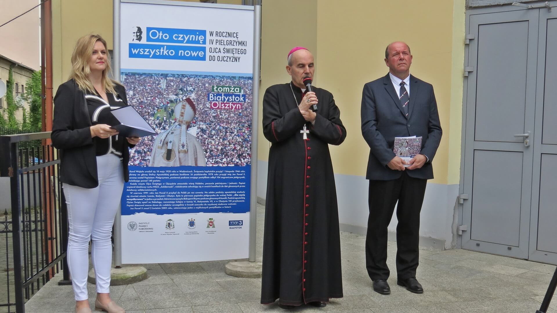 Administrator Archidiecezji Białostockiej bp Henryk Ciereszko przypomniał, że w czasie pobytu w Białymstoku w 1991 roku Jan Paweł II ustanowił diecezję białostocką (od marca 1992 roku podniesioną do rangi archidiecezji). Mówił, że taka wystawa jest potrzebna, zwracał uwagę na jej aspekt edukacyjny, zwłaszcza dla młodego pokolenia. "Abyśmy żyli tym, co nam pozostawił Ojciec Święty w swoim nauczaniu, gestach wobec nas" - mówił bp Ciereszko.