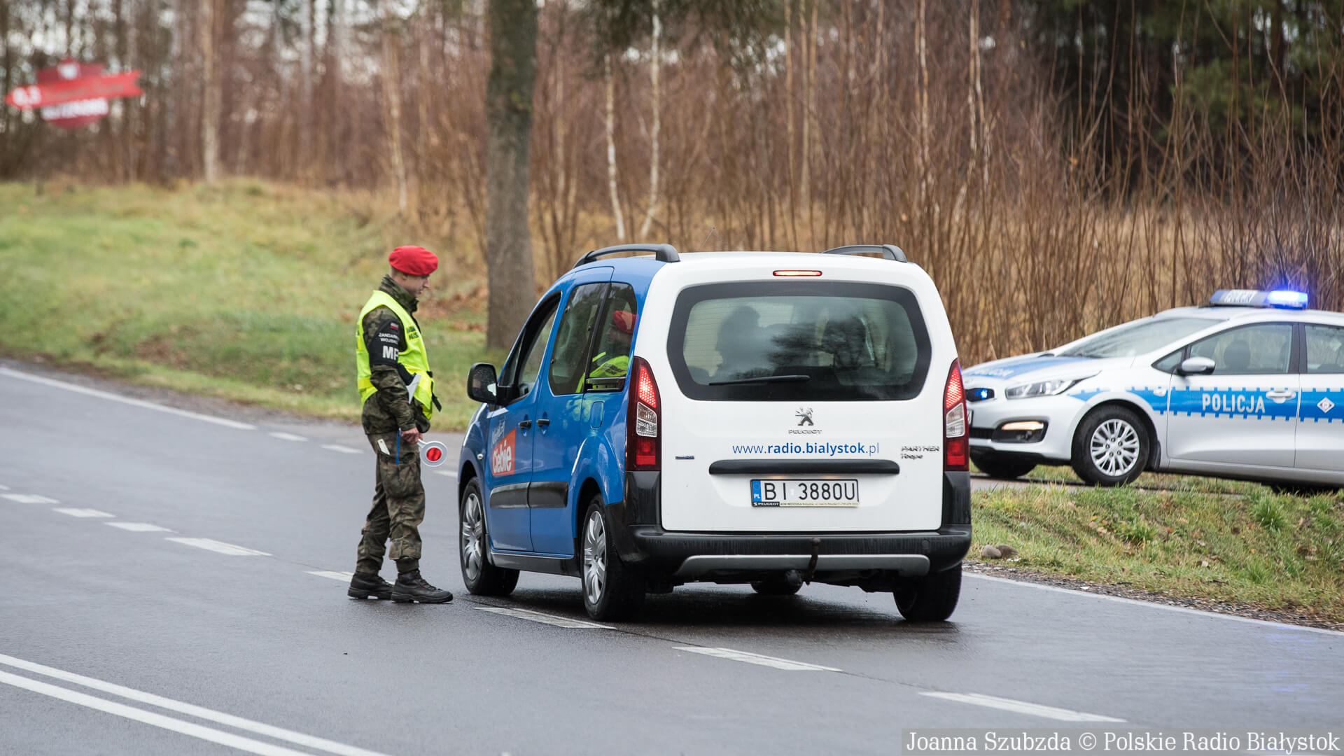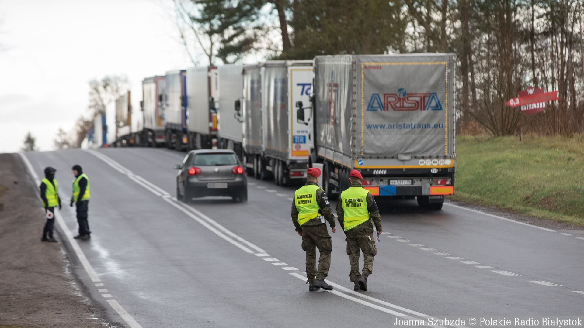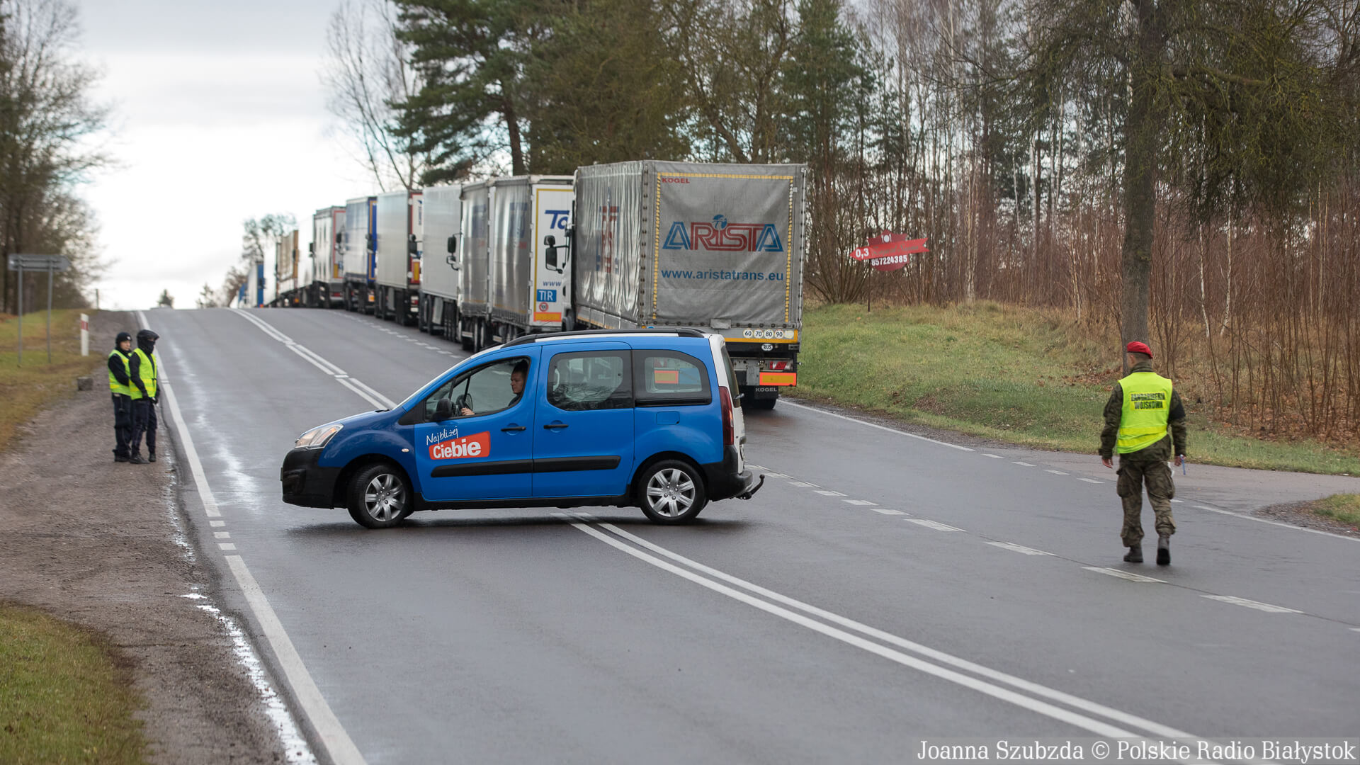 Punkt kontrolny jest zaledwie pięć kilometrów przed polsko-białoruską granicą. Jest tam patrol policji i żandarmerii wojskowej. Żandarmi zatrzymują wszystkich kierowców, którzy dojeżdżają do Kuźnicy. Przejechać mogą tylko albo mieszkańcy, albo kierowcy, którzy jadą do przejścia granicznego.