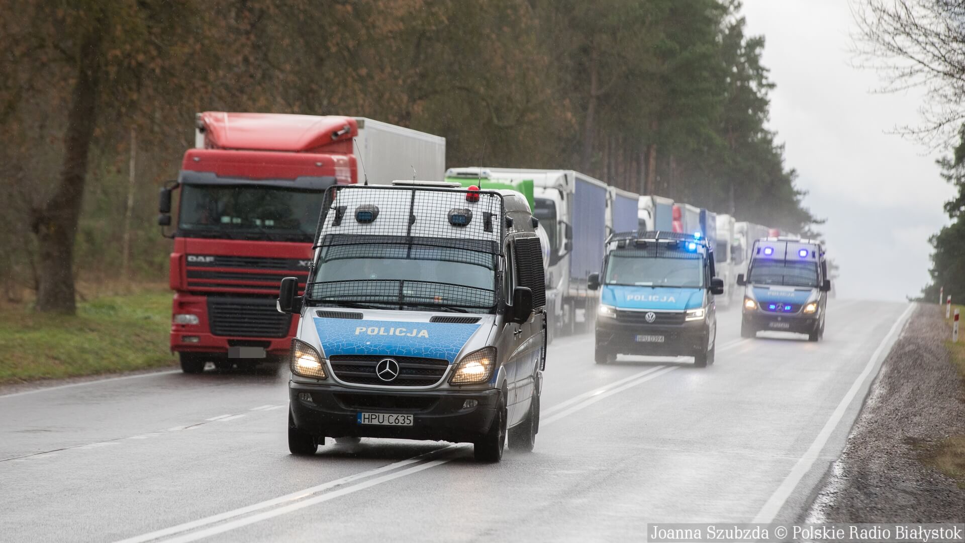 Nasi dziennikarze zobaczyli, że w ciągu pół godziny w kierunku granicy pojechało ok. 30 dużych policyjnych radiowozów. Jadą w grupach, po 5-8 samochodów, a w nich są oddziały prewencji.