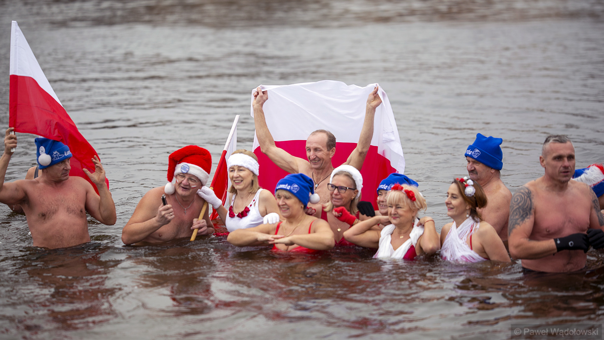 Mamy biało-czerwone barwy, chcemy świętować i uczcić tak piękny dzień wszyscy razem, z naszą rodziną morsową - mówi inny uczestnik akcji.