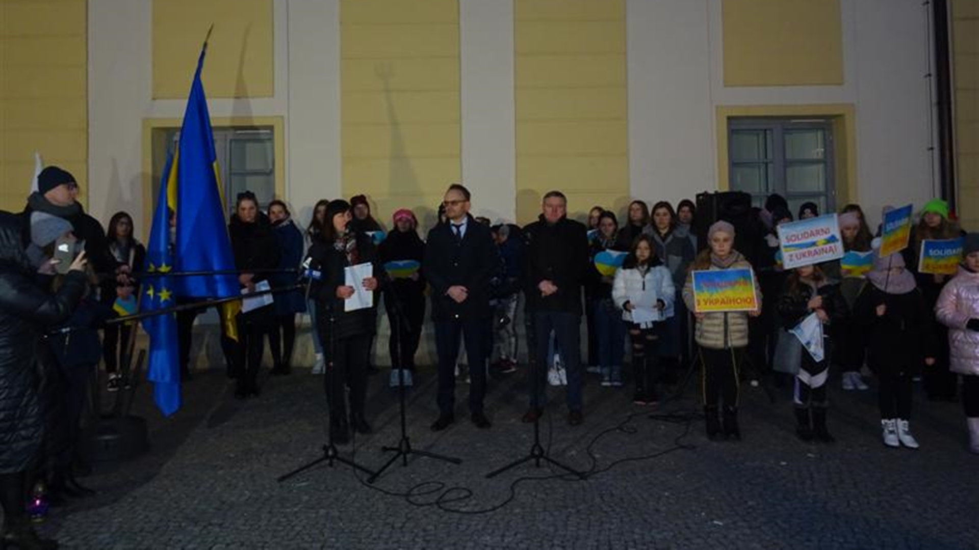 Mieszkańcy Bielska Podlaskiego wspierają Ukrainę. W piątek (25.02) wieczorem spotkali się przy ratuszu, by wyrazić sprzeciw wobec rosyjskiej agresji i pokazać solidarność z narodem ukraińskim.