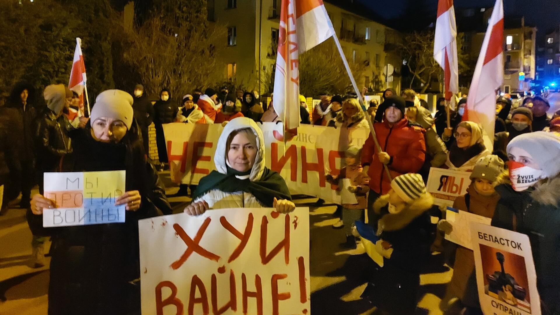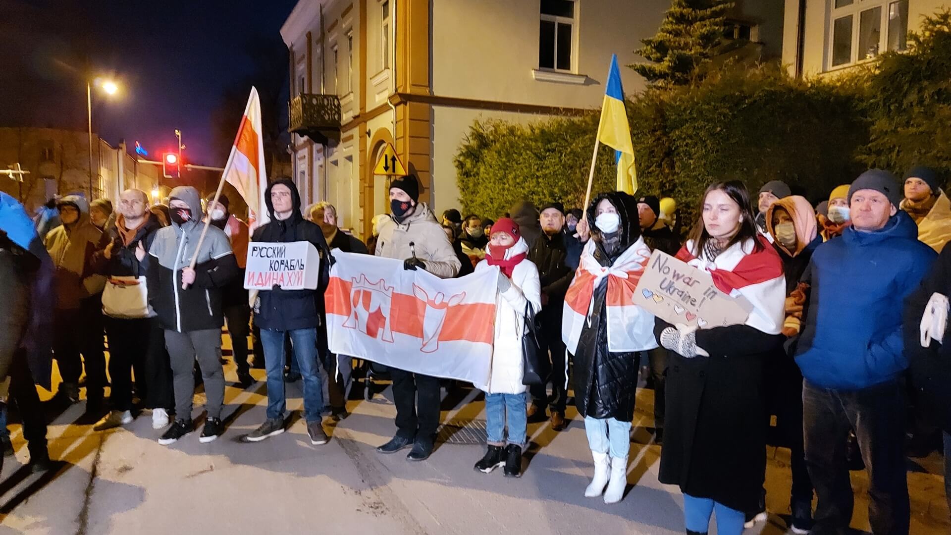 Przed konsulatem Białorusi w Białymstoku zgromadziło się około stu osób, które protestowały przeciwko wojnie rozpętanej przez Rosję. Były hasła „Sława Ukrainie” i „nie chcemy wojny”.
