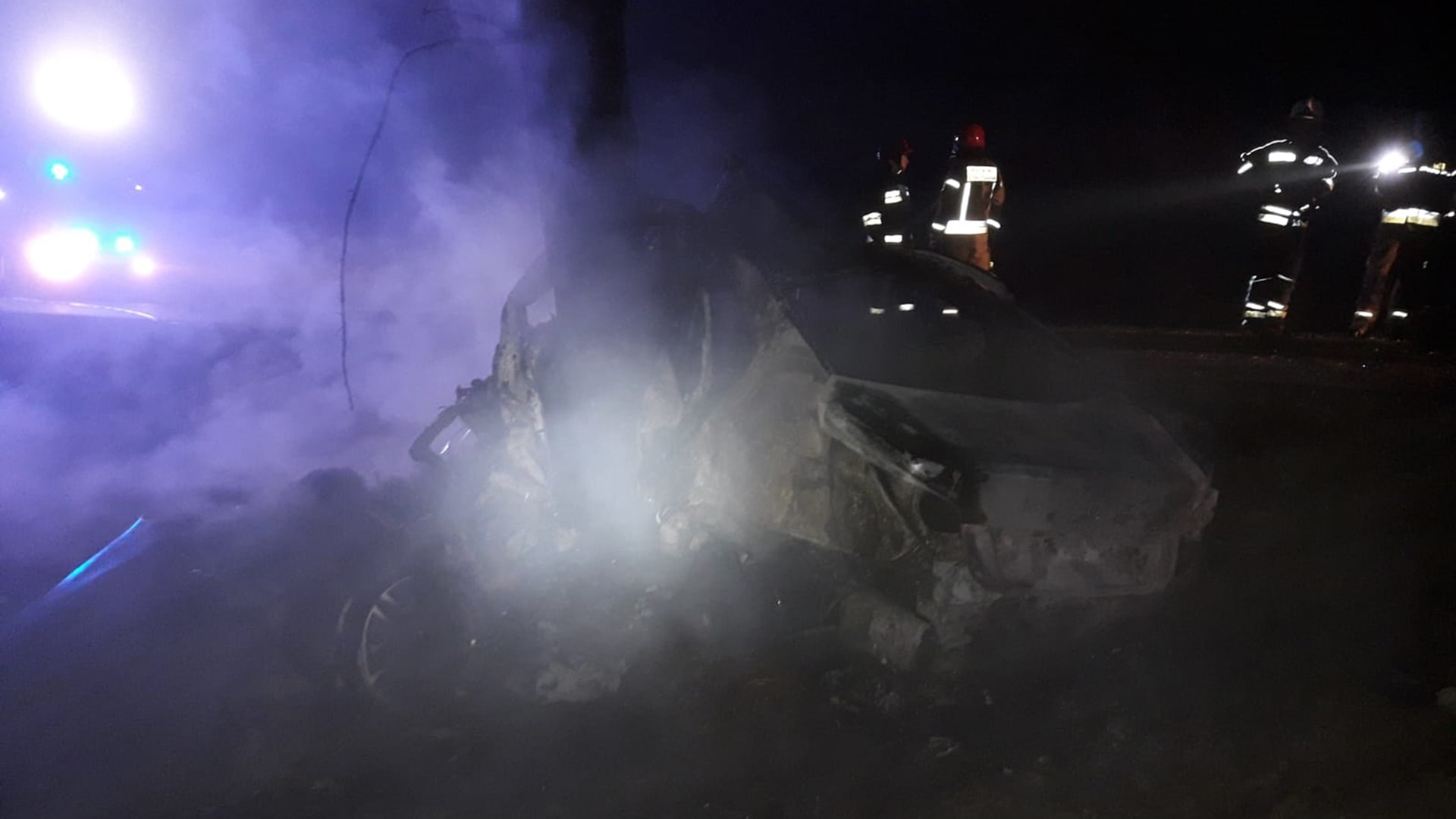 Zginął pasażer i kierowca samochodu. Trzeci z mężczyzn trafił do szpitala. Trwają poszukiwania czwartego z pasażerów, który mógł być w samochodzie.