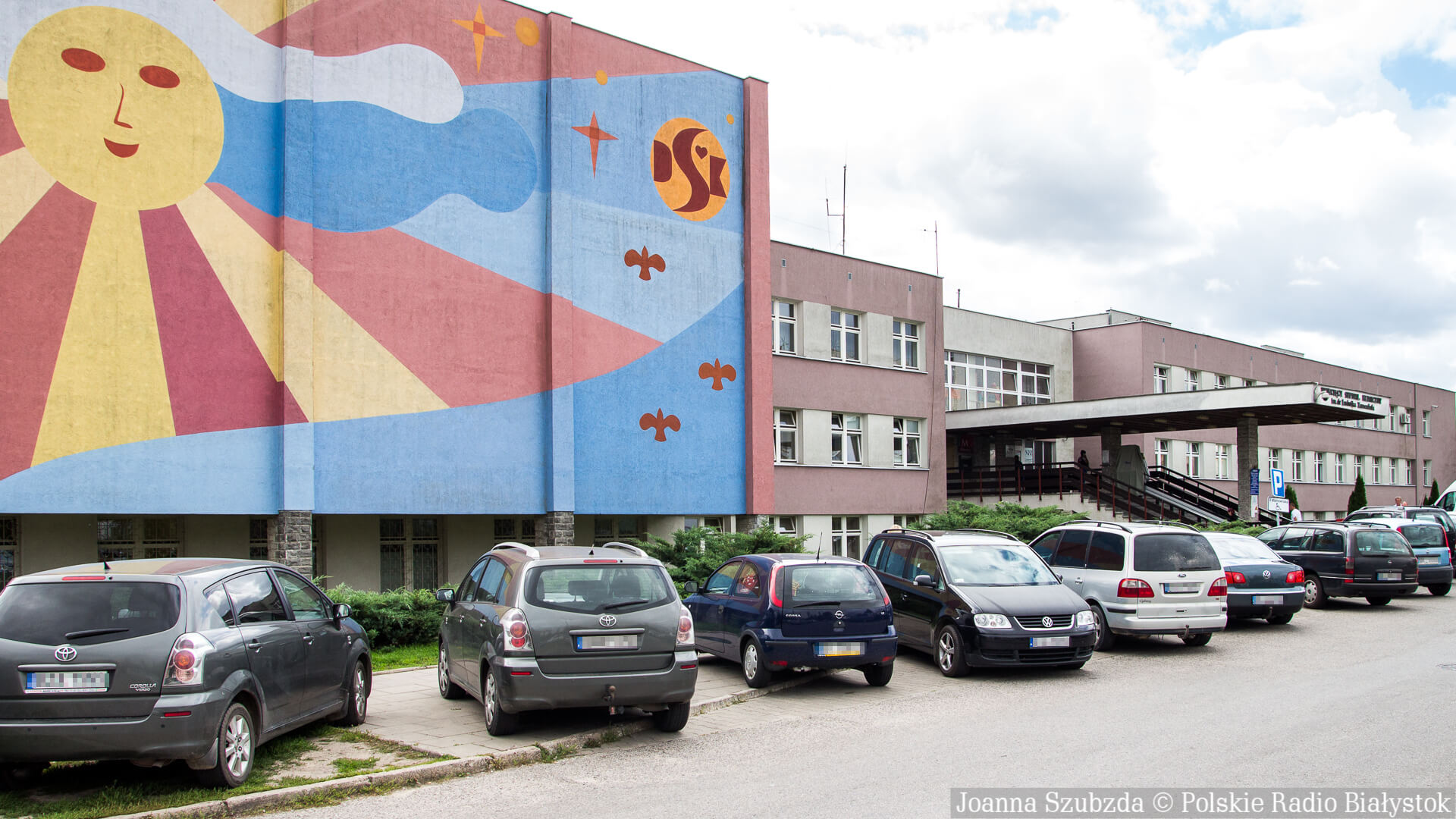 Nie ma już "słoneczka" na frontowej ścianie Uniwersyteckiego Dziecięcego Szpitala Klinicznego w Białymstoku. W jego miejsce powstaje nowy mural przedstawiający chore zwierzątka i misia w roli lekarza, który się nimi opiekuje.