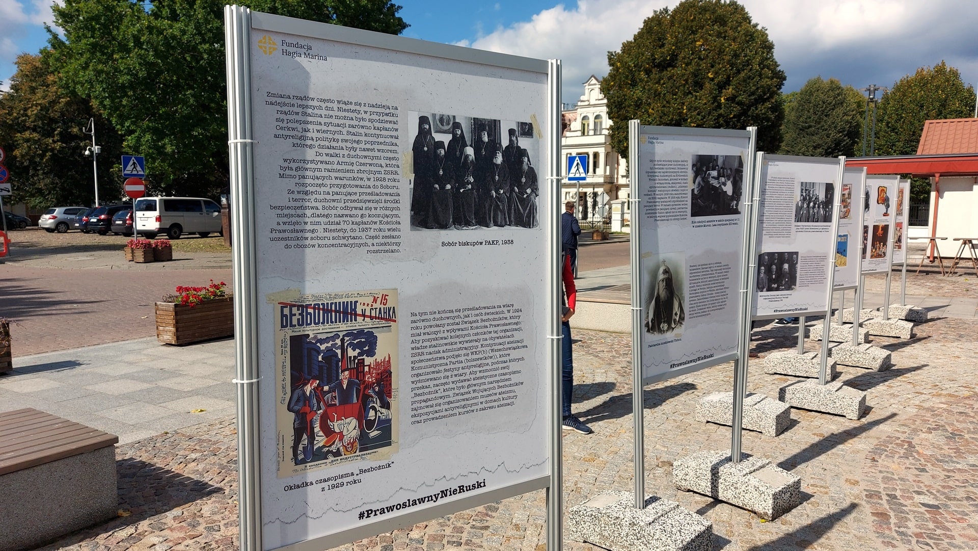 Na wystawie są m.in. antyreligijne propagandowe plakaty i zdjęcia niszczonych cerkwi. W piątek (16.09) na Rynku w Supraślu otwarto wystawę "Zbrodnie komunistyczne wobec Cerkwi Prawosławnej".