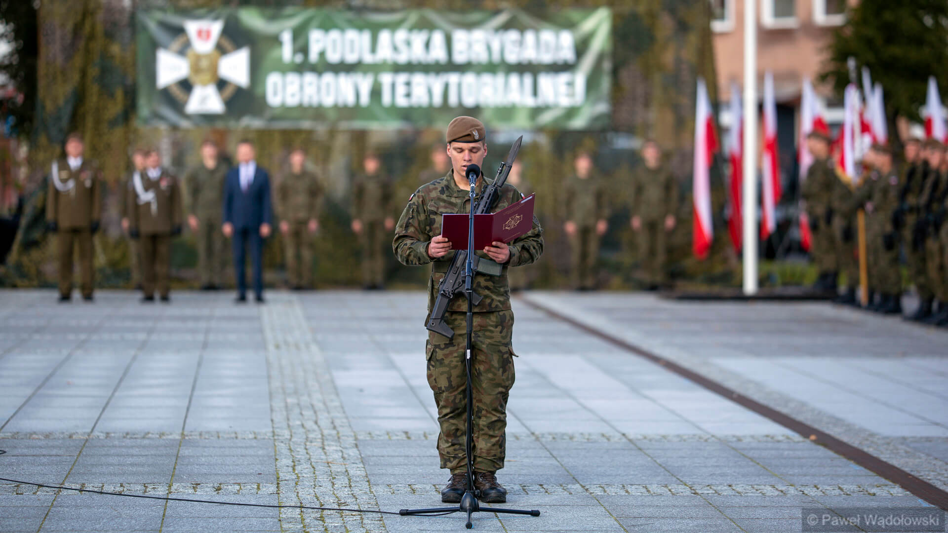 Przysięgę wojskową na sztandar 1. Podlaskiej Brygady Obrony Terytorialnej złożyli ochotnicy, którzy na co dzień wykonują inne zawody: nauczyciel, lekarz weterynarii, diagnosta laboratoryjny, technik BHP, informatyk, urzędnik, a także studenci i uczniowie.