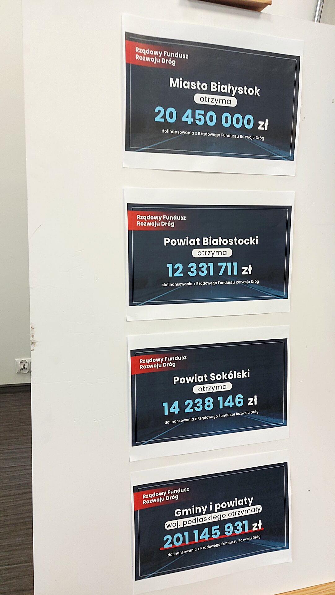 Podlaski Urząd Wojewódzki opublikował ich listę. Wynika z niej, że np. powiat siemiatycki dostanie 1,2 mln złotych na remont drogi powiatowej Mielnik - Wajków, gmina Nowy Dwór 3 mln złotych na przebudowę drogi gminnej Chilmony - Bobra Wielka, a miasto Hajnówka 1,4 mln złotych na rozbudowę ulicy Armii Krajowej.