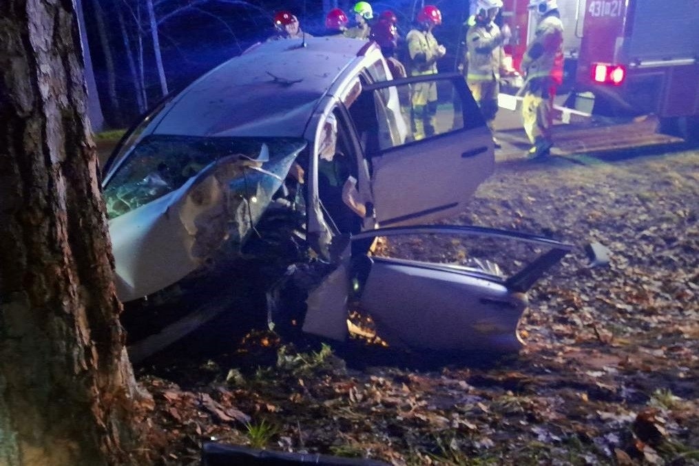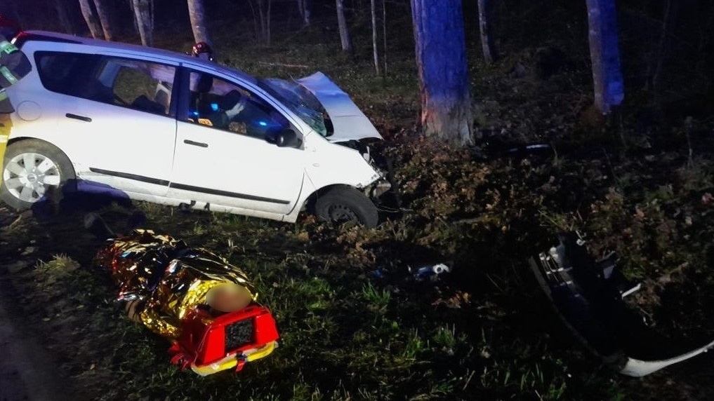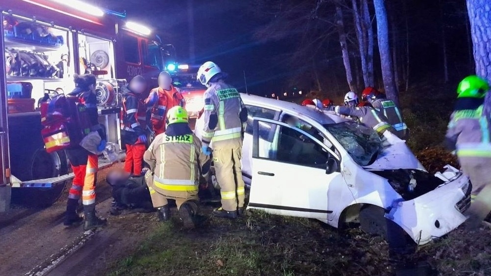 Funkcjonariusze wszczęli pościg. Po około dwóch kilometrach kierujący na łuku drogi stracił panowanie nad pojazdem i uderzył w drzewo. Strażnicy graniczni wezwali służby ratownicze i zabezpieczyli miejsce zdarzenia. Osoby poszkodowane w zdarzeniu udało się strażakom wydostać z pojazdu po rozcięciu karoserii przy użyciu specjalistycznego sprzętu. Kierowcę i czterech pasażerów karetki pogotowia zabrały do szpitali.