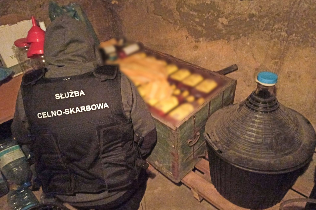 Ponad 470 litrów nielegalnego alkoholu oraz blisko pół tys. paczek papierosów pochodzących z przemytu znaleźli funkcjonariusze podlaskiej KAS w jednym z gospodarstw w podlaskiej gminie Narewka. Zarzuty usłyszał 61-latek podejrzany o posiadanie tych towarów.