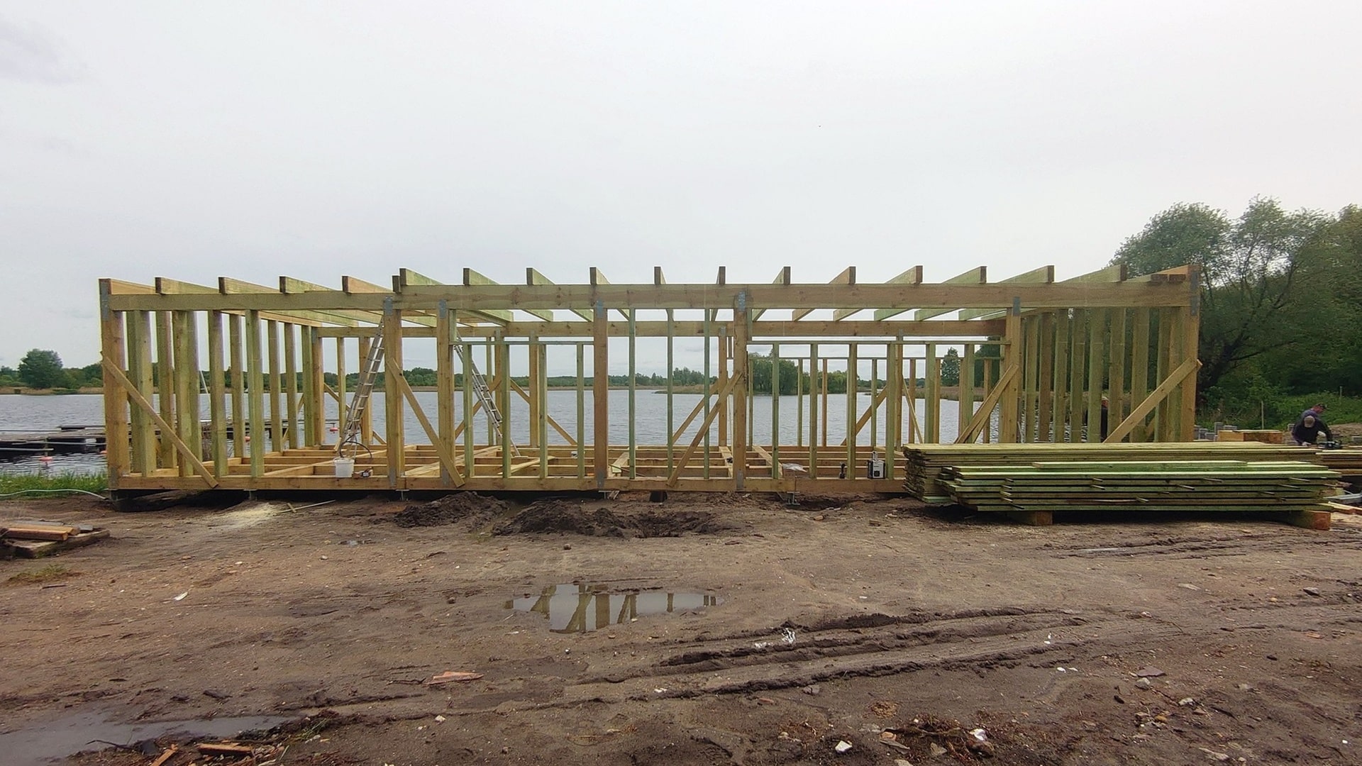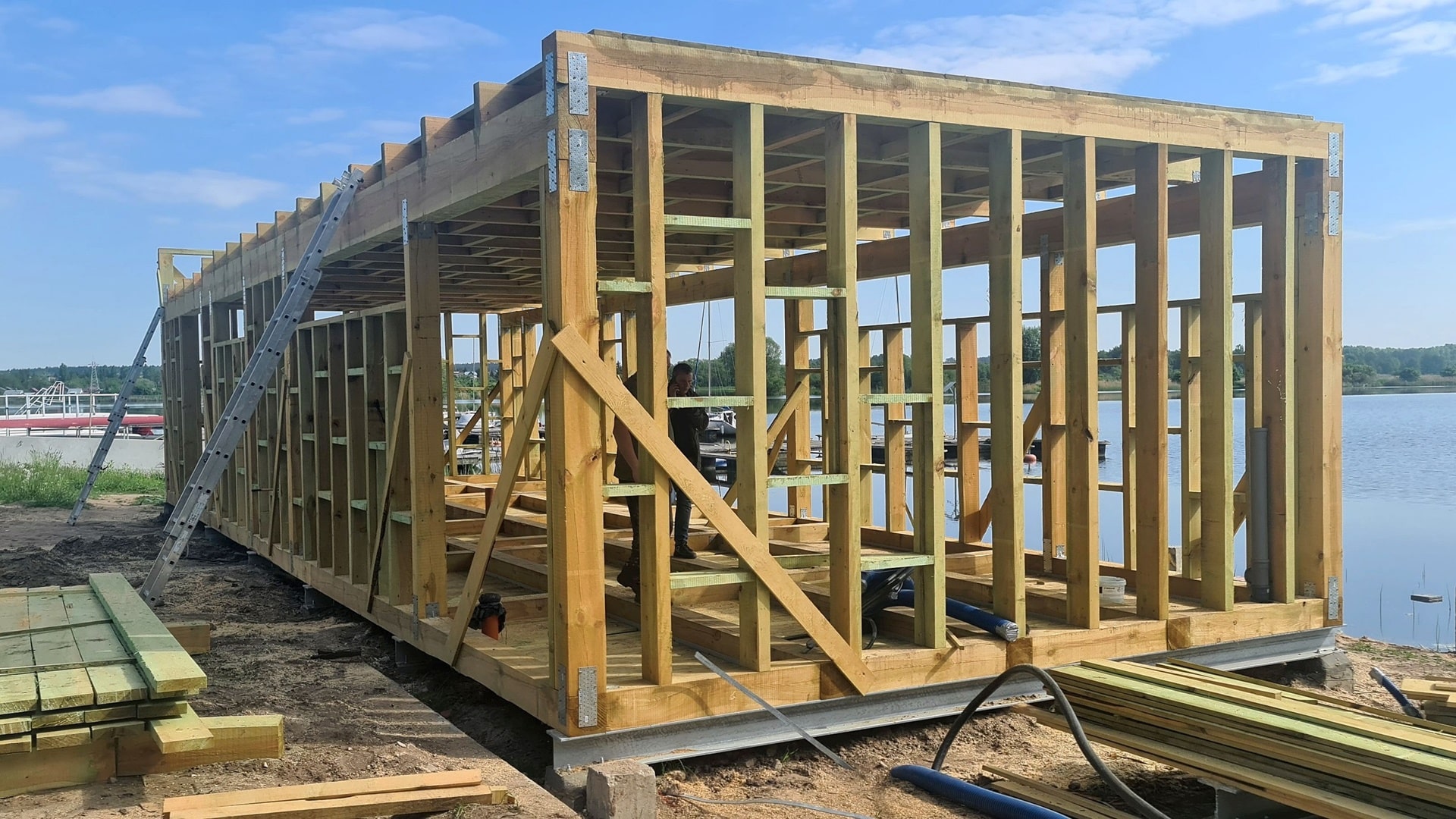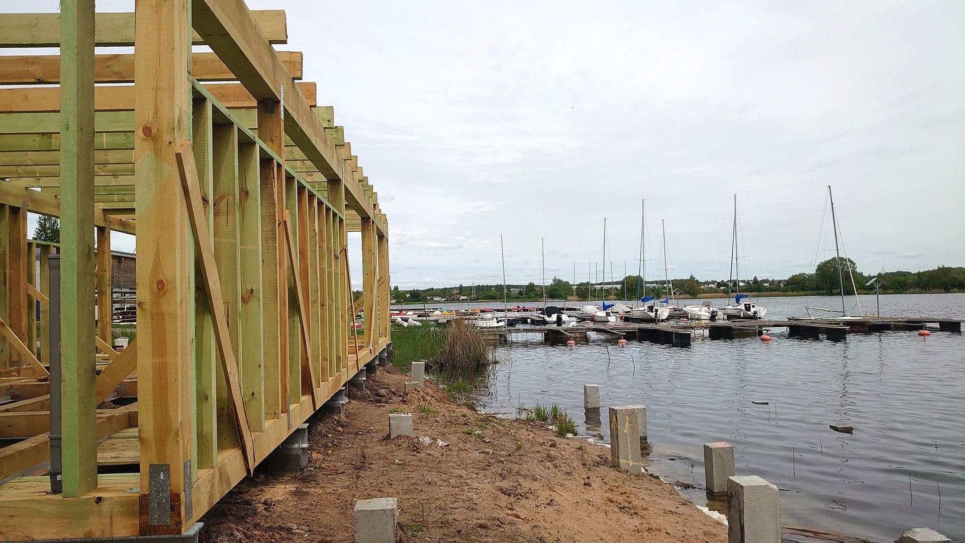 Za hangarami na sprzęt wodny, przy placu postojowym dla kamperów powstaje sauna z pomostami, wiatami i slipem do wodowania łodzi, jachtów, żaglówek.