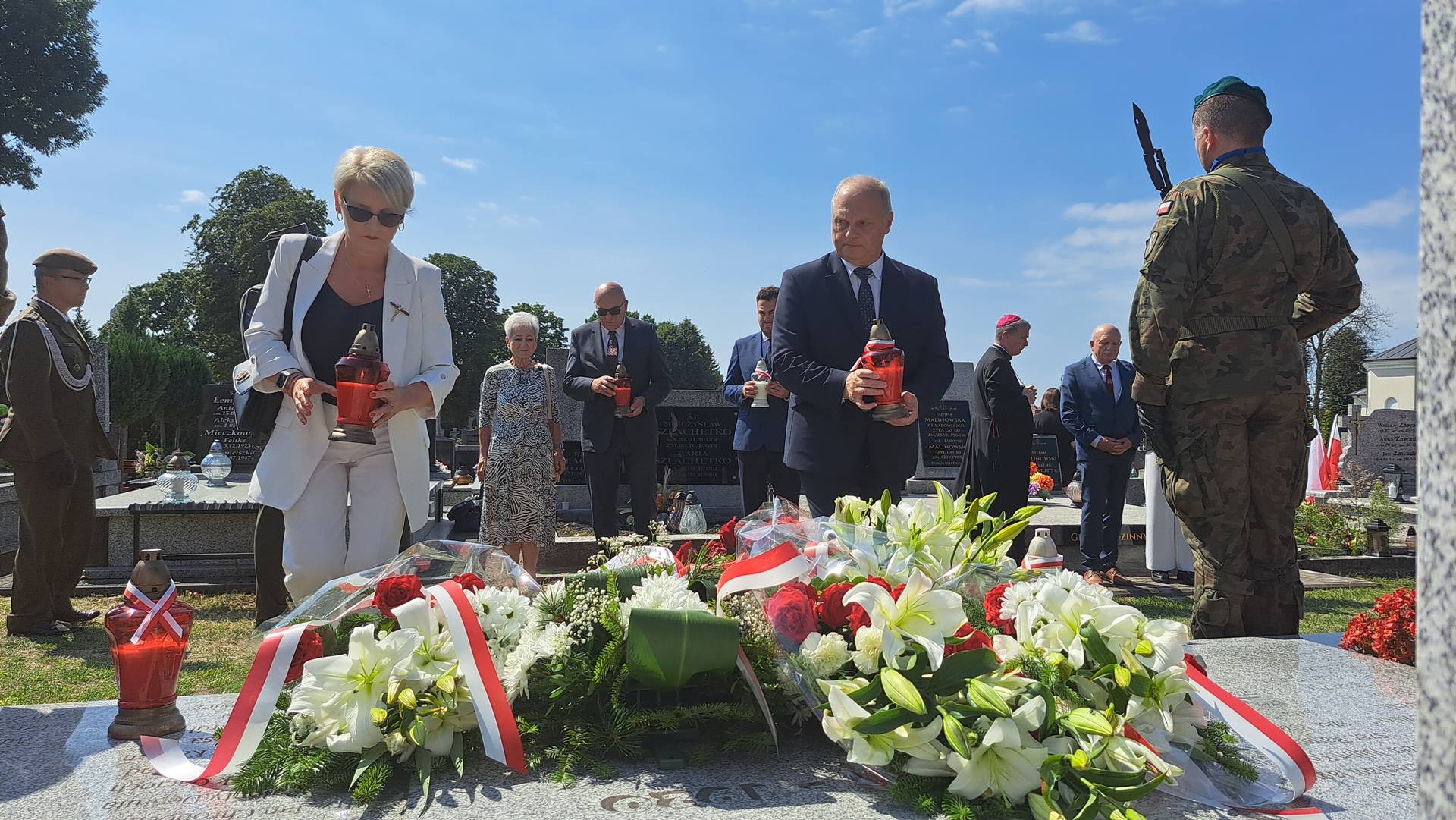 Kilkanaście grobów wojskowych odwiedzili z kwiatami i zniczami uczestnicy uroczystości na zabytkowym cmentarzu w Łomży przy ul. Kopernika.