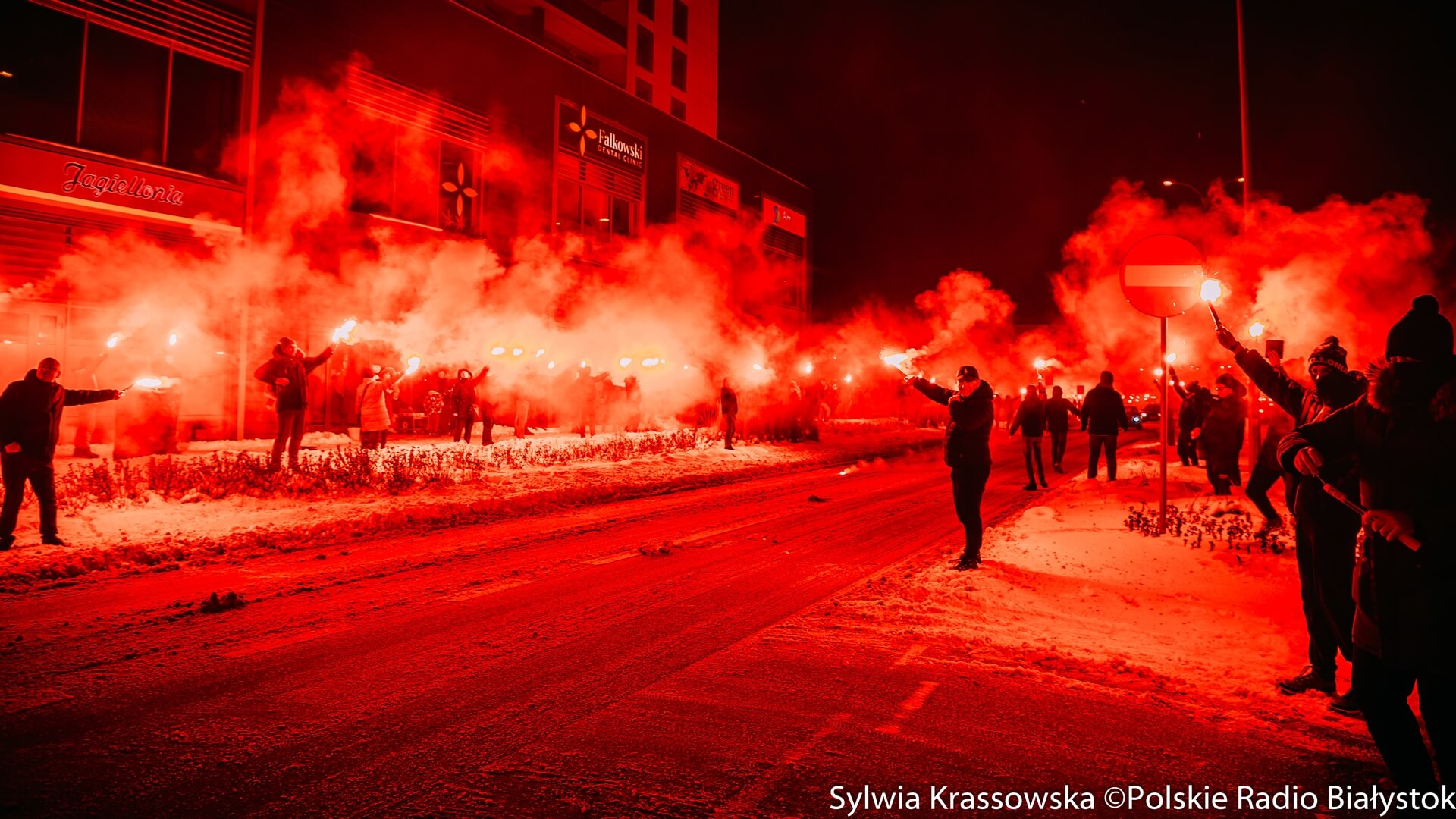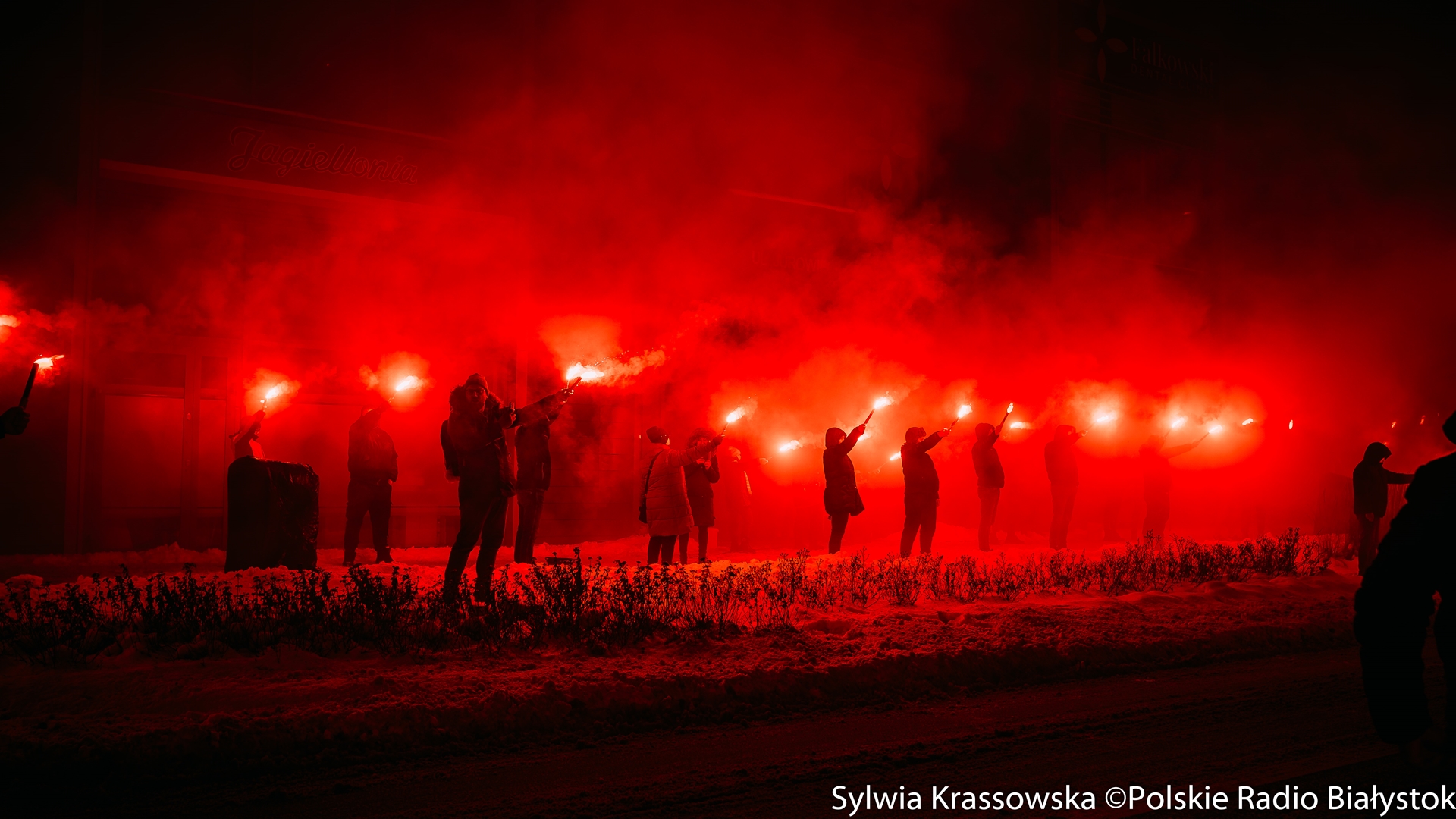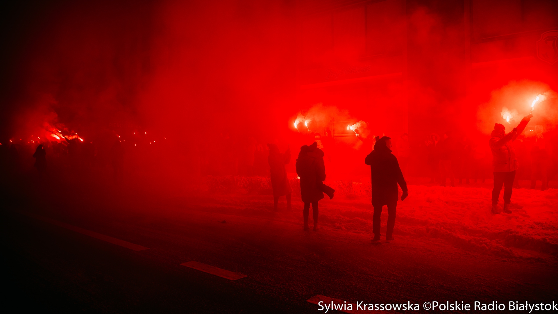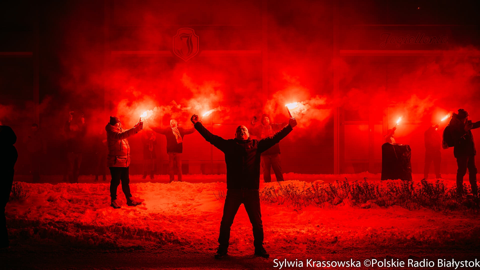 To już kilkuletnia akcja kibiców Jagiellonii Białystok. W sobotę (13.01) wieczorem fani żółto-czerwonych odpalili setki rac w centrum Białegostoku. To piąte tzw. "Jagiellońskie Racowisko".