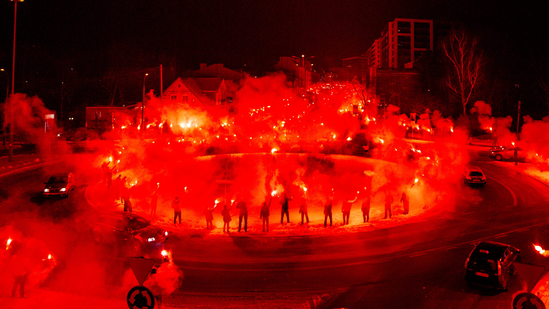 Fani odpalili race również na ulicach w pobliżu ul. Jurowieckiej - m.in. wokół ronda przy ul. Poleskiej.
