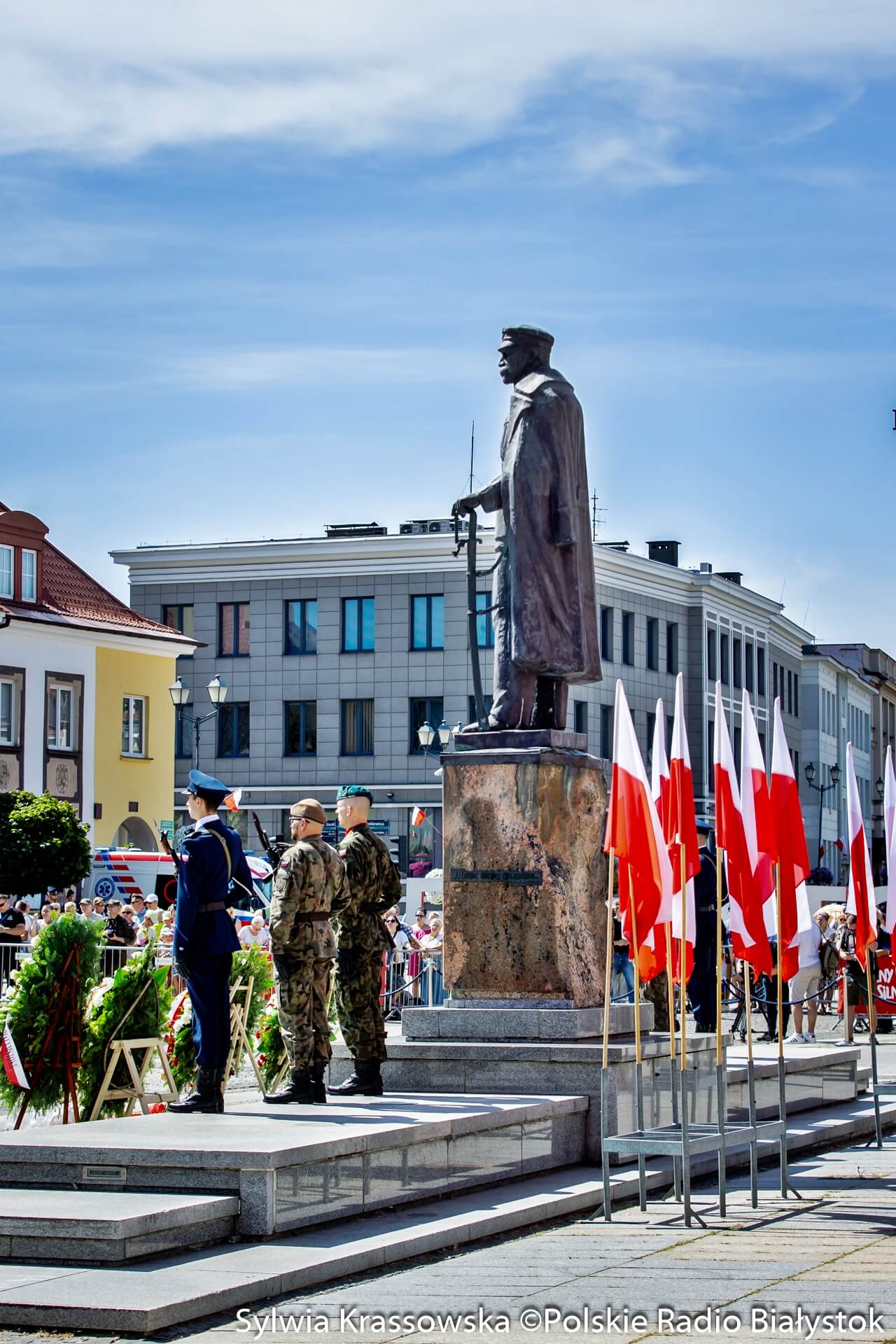 Białostoczanie, żołnierze i samorządowcy wzięli udział w uroczystych obchodach Święta Wojska Polskiego w Białymstoku, które rozpoczęły się na Rynku Kościuszki przed pomnikiem marszałka Józefa Piłsudskiego o 12:30. Mieszkańcy Białegostoku tłumnie przybyli na uroczystości.