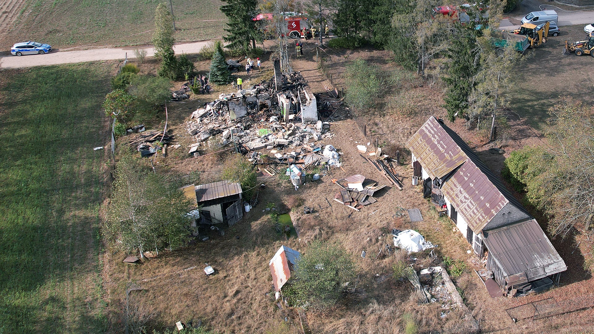- Podczas działań gaśniczych znaleziono łuski od amunicji, więc na ten czas usunięto strażaków, wezwano grupę pirotechniczną policji, która pozbierała te elementy i teraz dalej kontynuujemy prace gaśnicze, aby prokuratura mogła zakończyć oględziny, aby można było zabrać ciało. I wtedy przy pomocy cięższego sprzętu dostarczonego przez gminę Grajewo będziemy chcieli położyć wszystkie ściany, komin, aby ten budynek nie stwarzał zagrożenia dla innych osób - mówi brygadier Daniel Lewczuk.