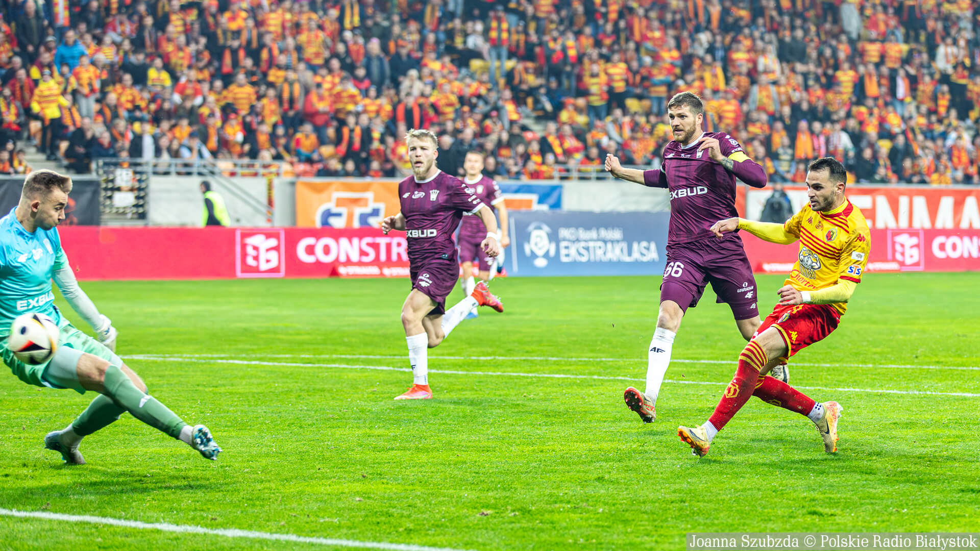 Radio Białystok | Wiadomości | Wiadomości - Jagiellonia Białystok wygrywa z Koroną Kielce i awansuje na pozycję wicelidera [zdjęcia, wideo]