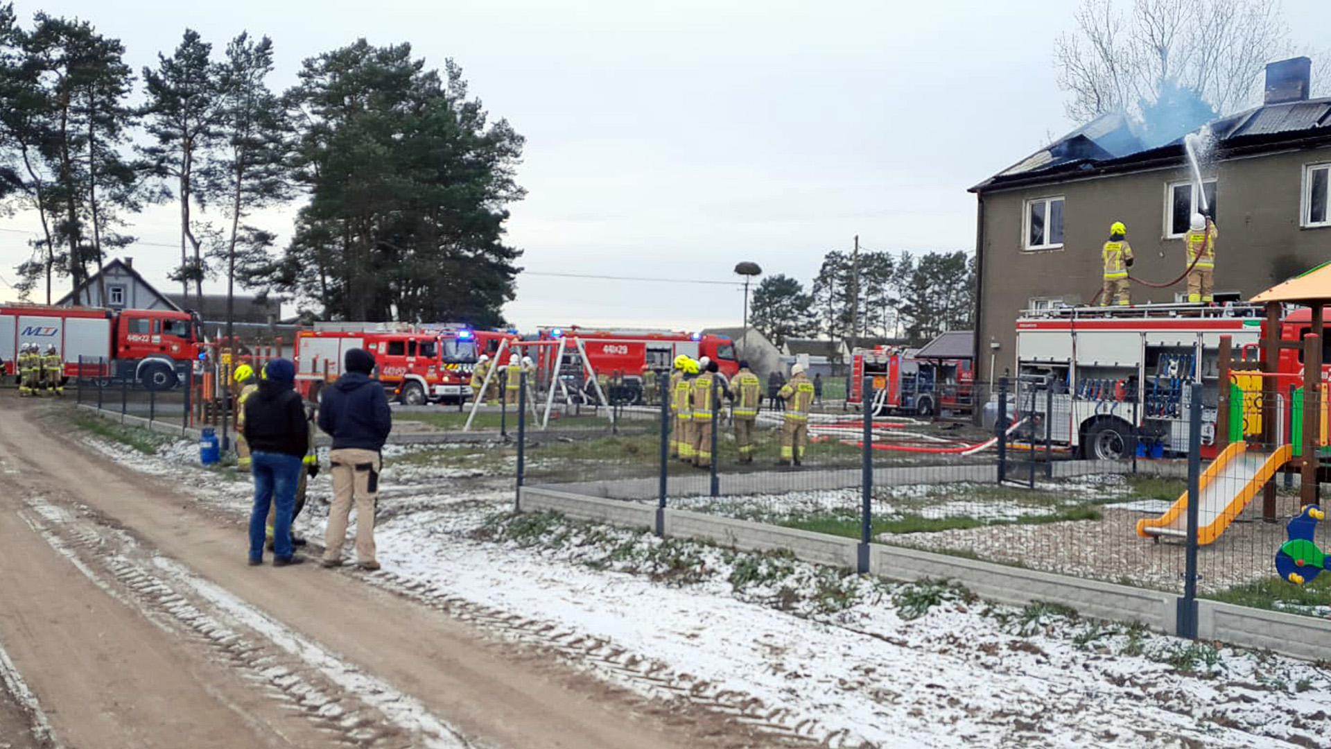 Płonie budynek po dawnej szkole. Jest w nim pięć mieszkań, w których mieszkają cztery rodziny. Wszystkich udało się bezpiecznie ewakuować - w sumie 11 osób.