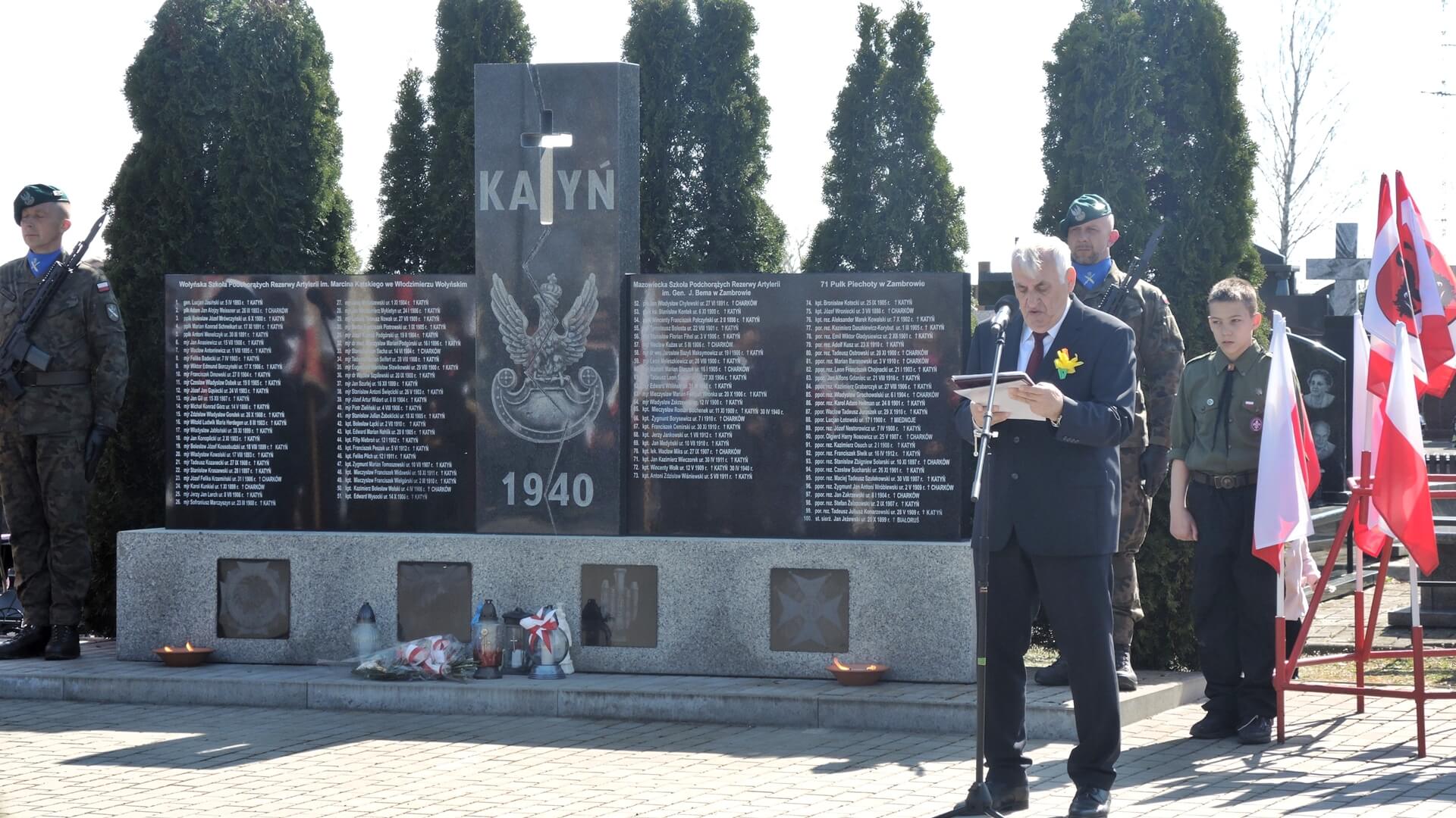 Pierwszym miejscem upamiętnienia zamordowanych był pomnik i 96 dębów pamięci na ul. Ofiar Katynia. Kilka lat temu pani Witomiła Wołk-Jezierska, córka zamordowanego w Katyniu oficera, zaproponowała to miejsce i teraz główne uroczystości odbywają się przed pomnikiem na cmentarzu - mówi burmistrz Zambrowa Kazimierz Dąbrowski.