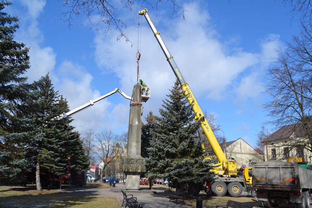 10-metrowy pomnik znajdujący się w centrum Sejn, wzniesiony na 25-lecie PRL, został w środę (21.03) zdemontowany.
