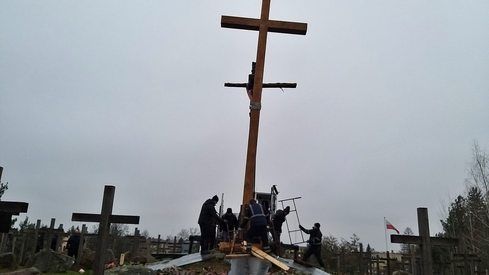 Stary krzyż został zdemontowany w listopadzie. Dębowy krzyż stał w tym miejscu 28 lat. Krzyż musiał być wymieniony ze względu na zły stan techniczny.