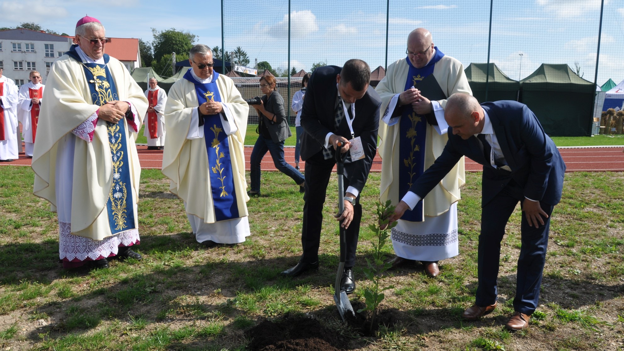 Symboliczne otwarcie boiska odbyło się w czasie sobotnich dożynek diecezjalnych. Obiekt poświęcił biskup ełcki Jerzy Mazur. Posadzono tam również dąb upamiętniający 250-lecie Krasnopola.