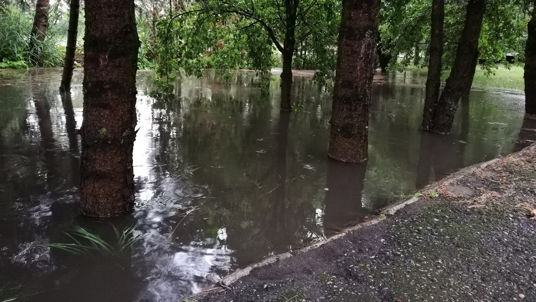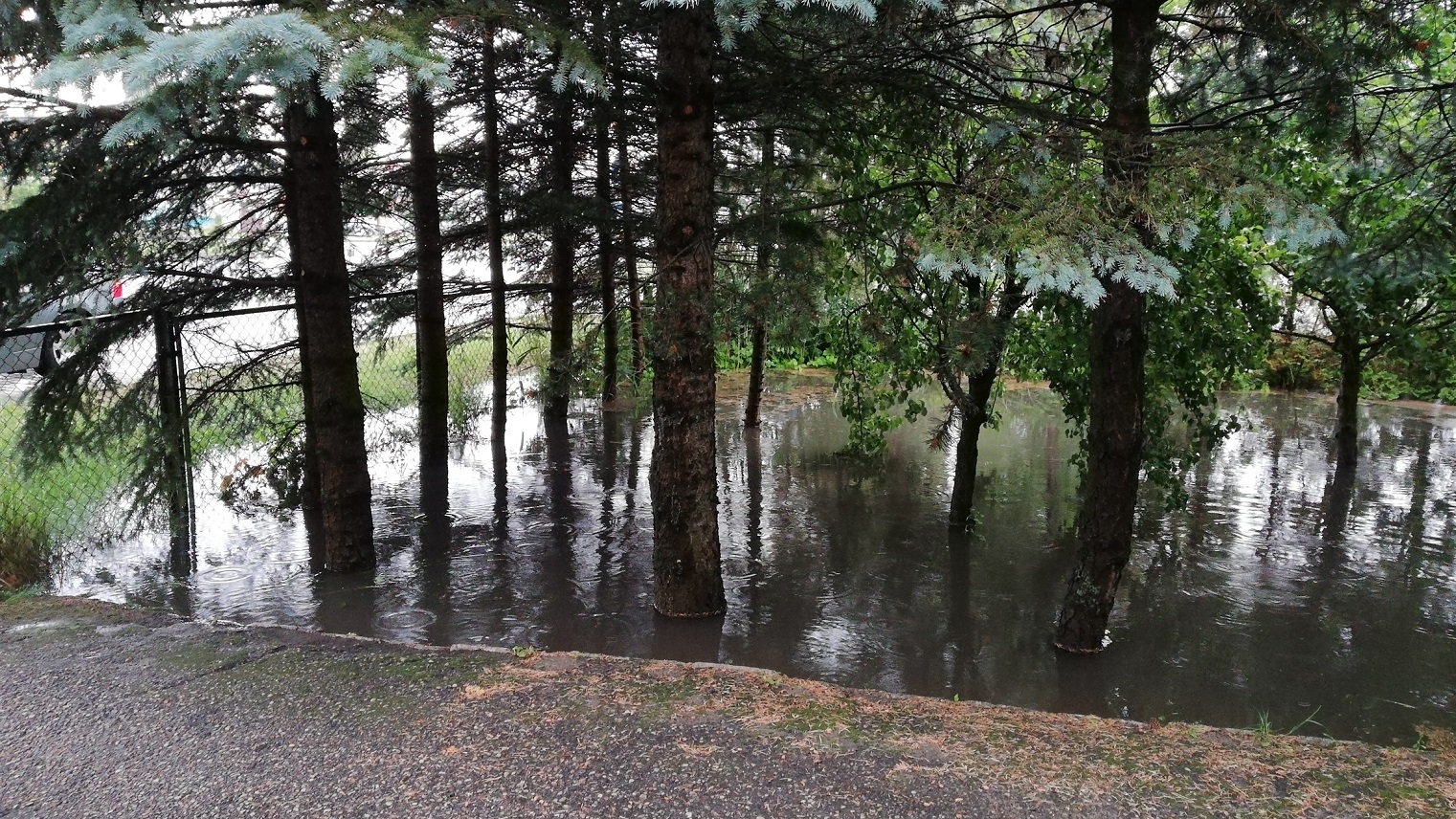 Kiedyś przy płocie były studzienki. Cała woda była do nich odprowadzona. Podczas budowy tej drogi zrobili tam coś innego i odcięli do nich dostęp. Mieszkam tu 70 lat i tego nigdy tu nie było. Przez te ciągłe zalewania pogniły mi drzewa i już nie rosną. Muszę je wycinać. Jak nie ma mnie w domu tak ze dwie - trzy godziny, to jak wrócę piwnica już „pływa”.