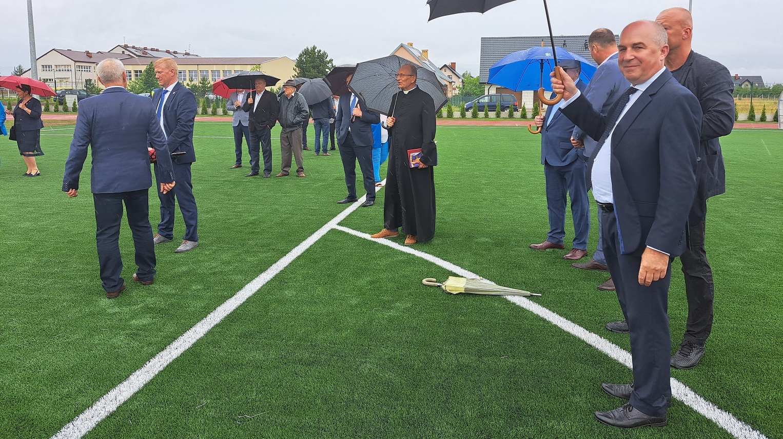 - Nawierzchnia sztuczna, oświetlenie, kort tenisowy, nowoczesna bieżnia, miejsce do skoku w dal, pchnięcia kulą oraz boisko boczne. To bardzo dużo i inne gminy mogą nam tego zazdrościć. Gdyby jednak nie dofinansowanie z programu Polski Ład, to pewnie taki obiekt nigdy by nie powstał. Nie stać nas bowiem, aby wydać takie pieniądze z naszego budżetu. A dzięki funduszom rządowym udało się to nam zrealizować - mówił wójt.