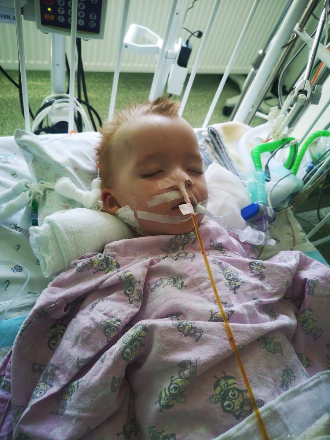 Z godziny na godzinę parametry stawały się coraz gorsze. Brzuszek synka nagle zaczął bardzo rosnąć, aż stał się większy od jego ciała. Natychmiast zapadła decyzja o operacji. Synek na jelicie cienkim miał  gigantyczną - 15-centymetrową torbiel. Po wycięciu wykryto martwicę. Okazało się, że poszła dalej. Ostatecznie usunęli prawie całe jelito. Zostało około 15 centymetrów.